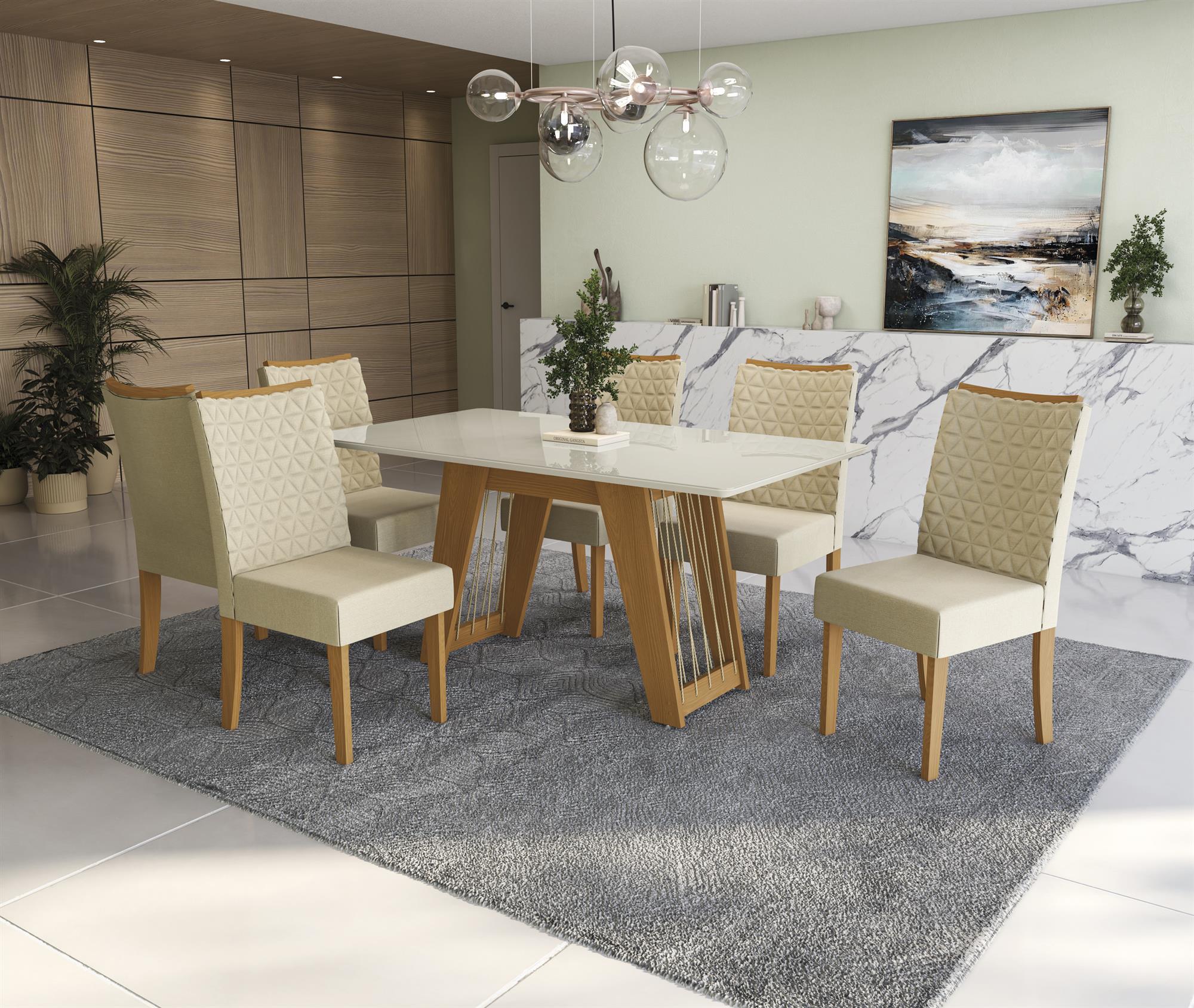 Conj Mesa Cinara c/ tampo e 6 Cadeiras Rosa