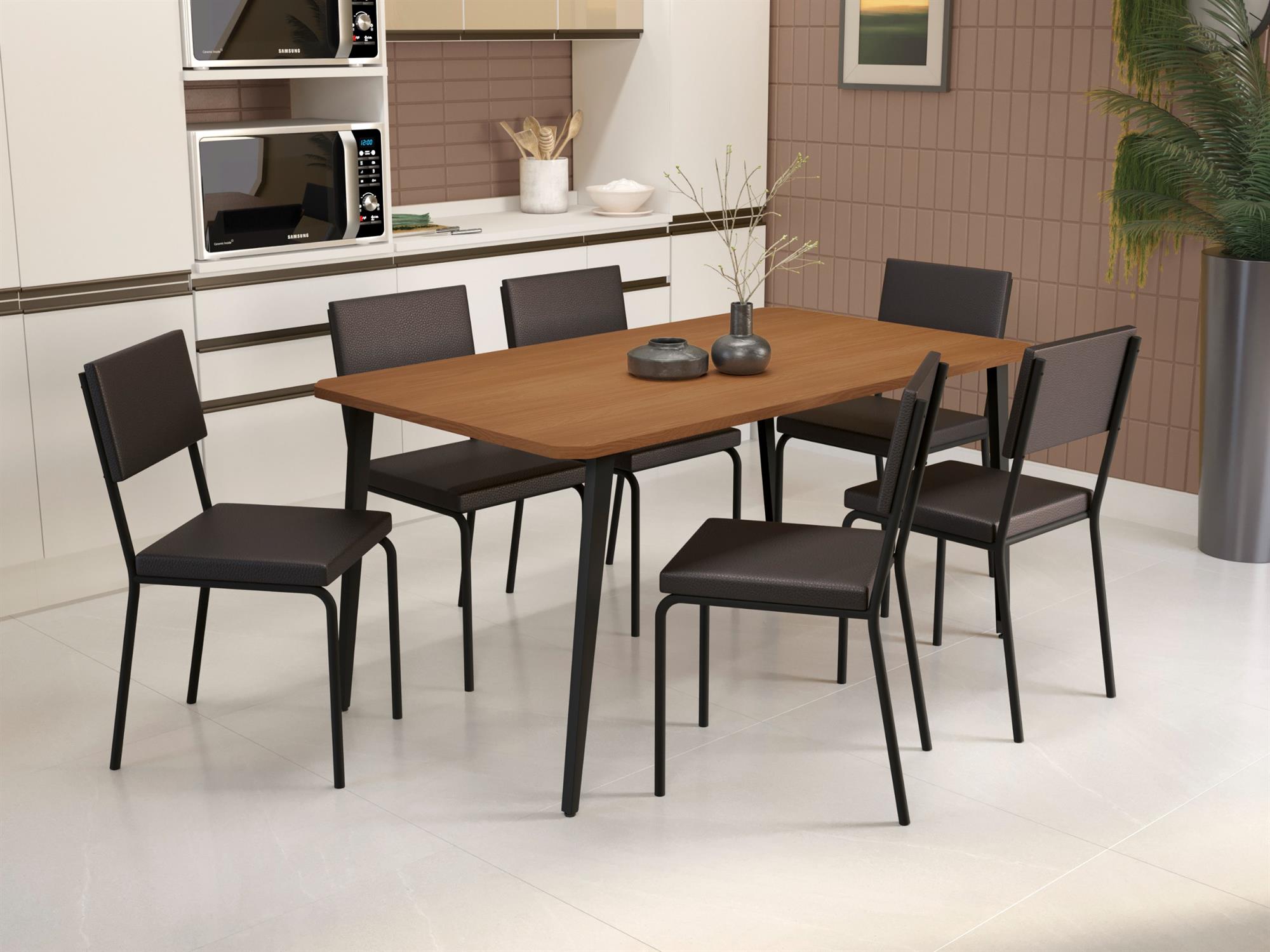 Conj. Mesa Iguaçu c/ tampo e 6 Cadeiras Zaria