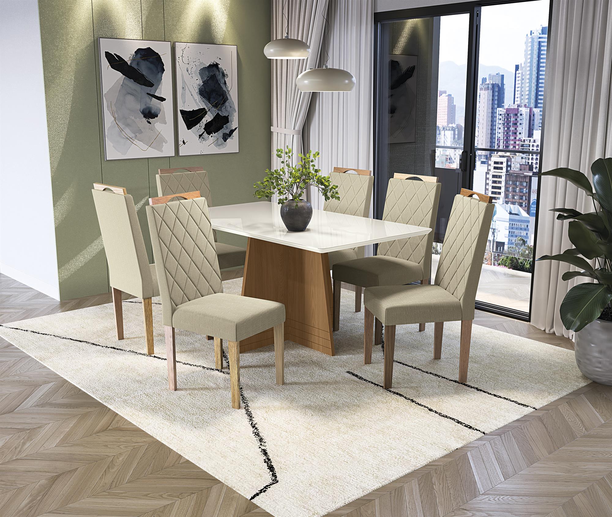 Conj Mesa Lótus c/ tampo e 6 Cadeiras Camélia