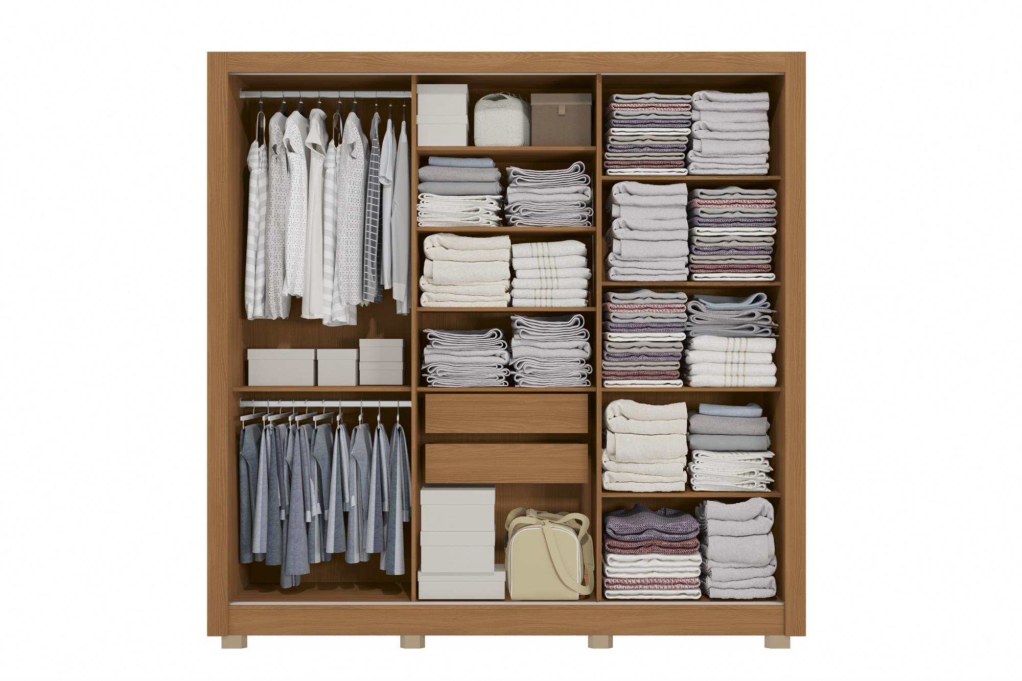 Roupeiro 3 portas de correr | 2 gavetas | com pés | espelho | portas reversíveis