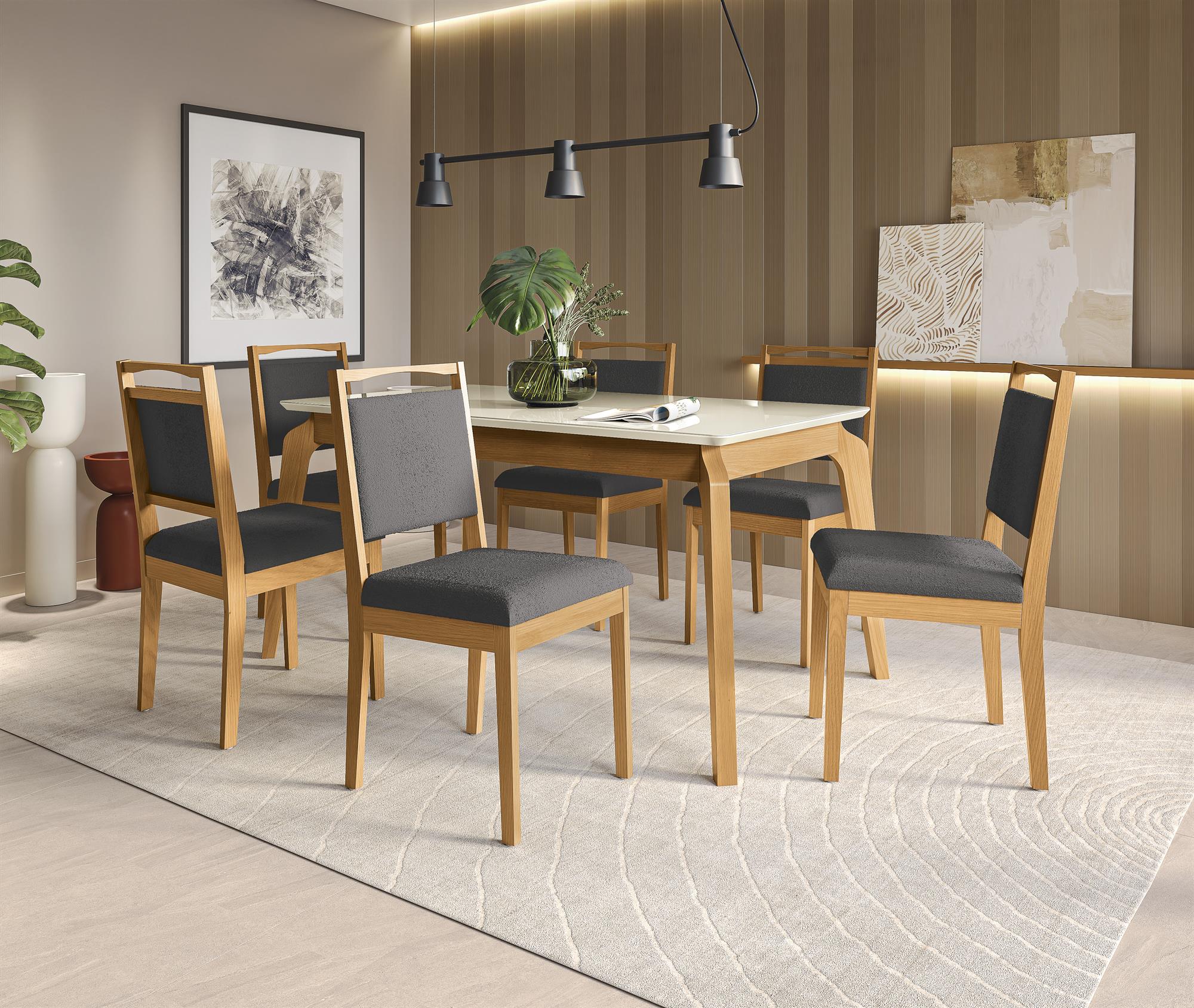 Conj Mesa Petra c/ tampo e 6 Cadeiras Lina