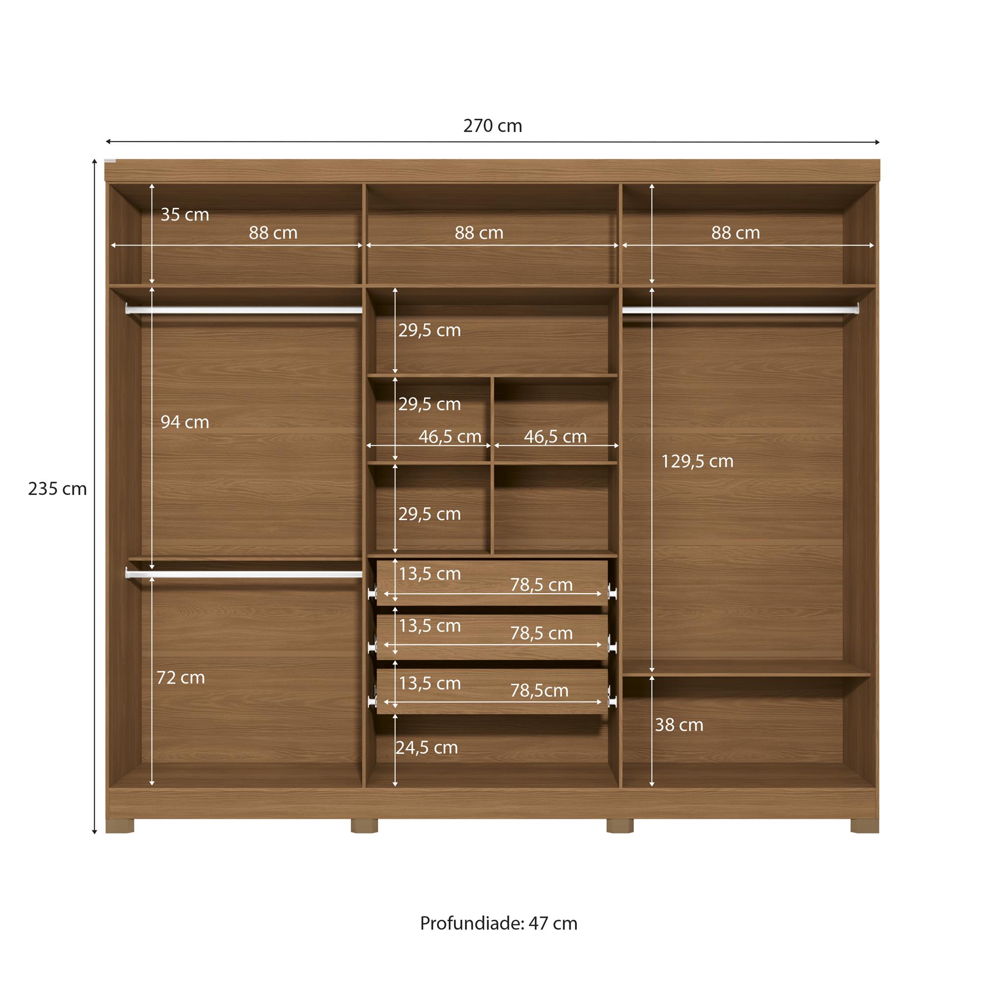 Roupeiro 6 portas | 3 gav c/ espelho e pés