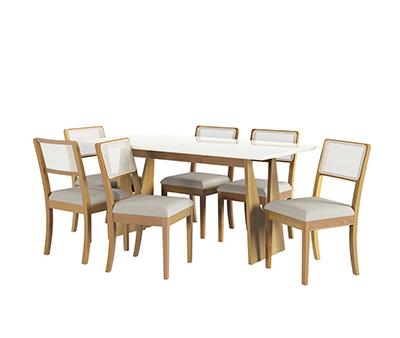 Conj Mesa Mila c/ tampo e 6 Cadeiras Lola