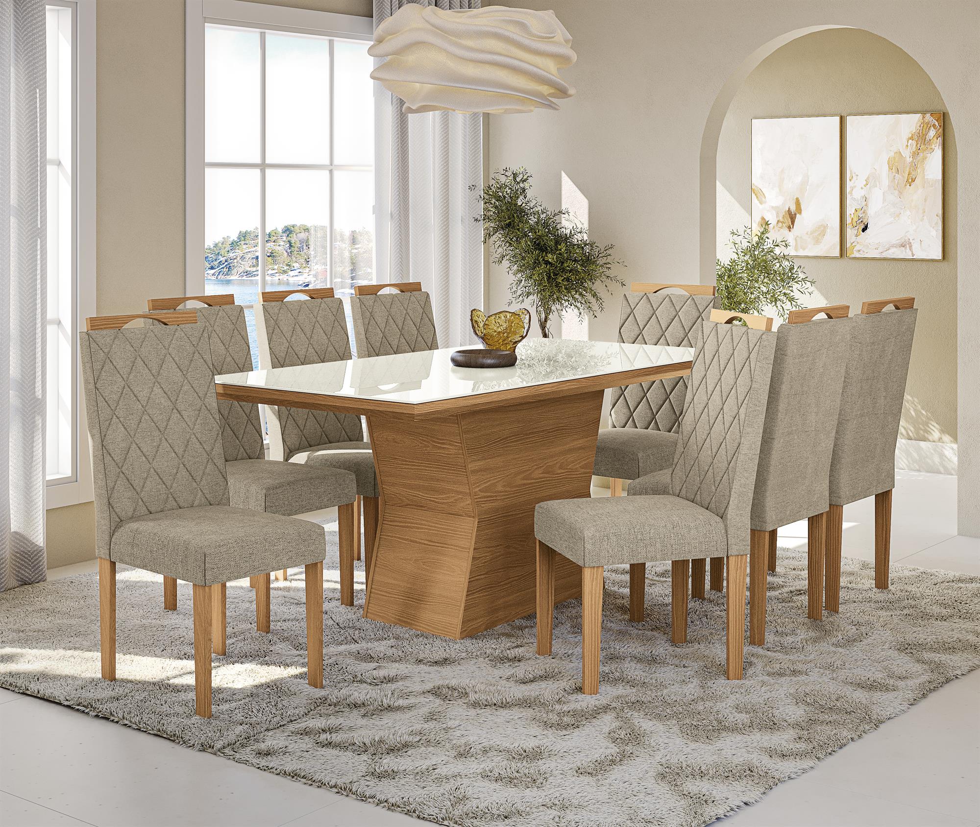 Conj Mesa Tília c/ tampo e 8 Cadeiras Camélia