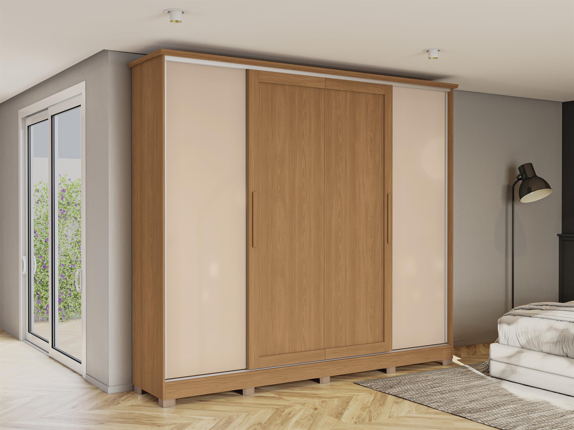 Roupeiro 4 portas de correr | 4 gavetas | com pés | portas reversíveis