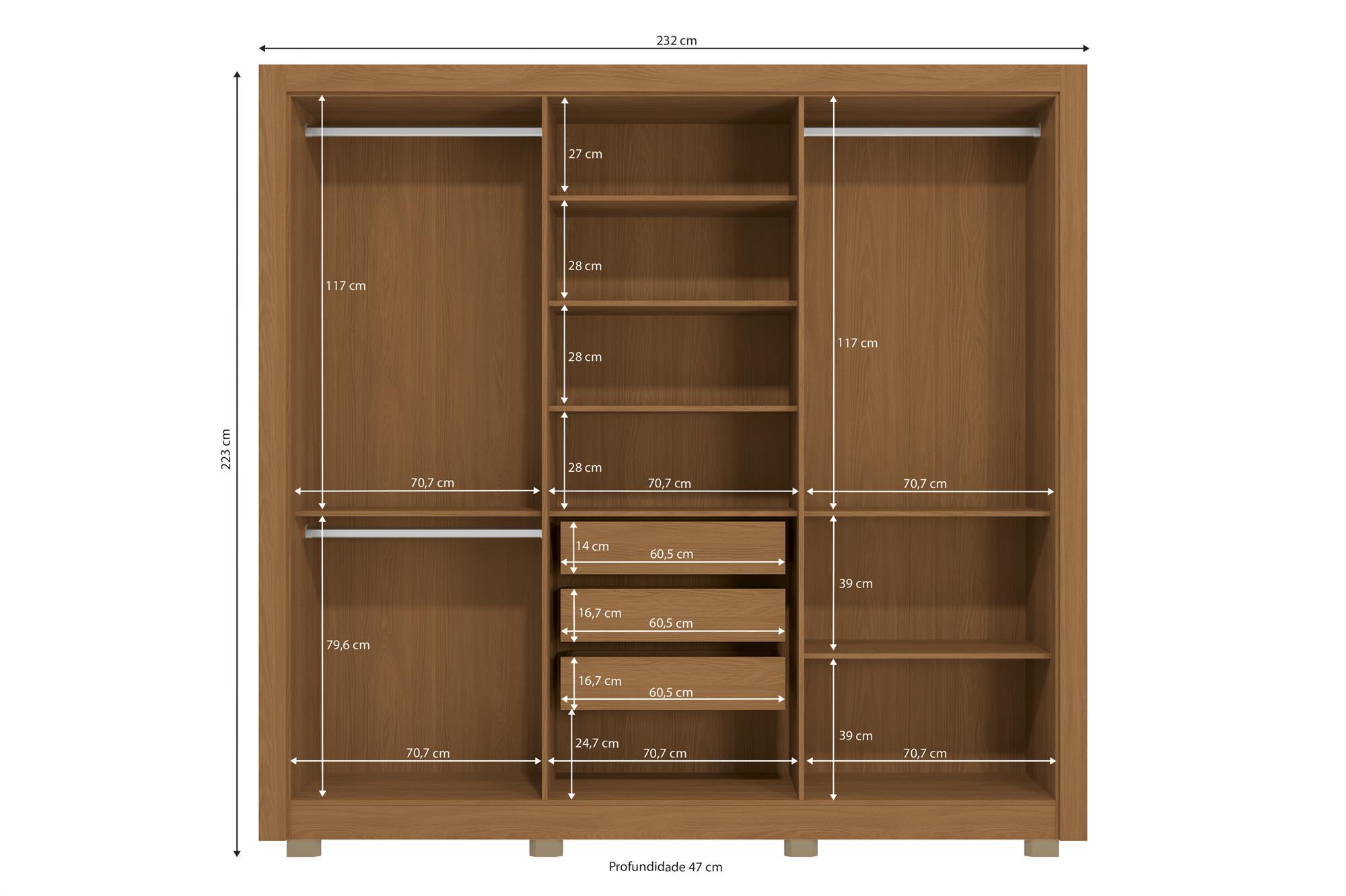 Roupeiro 6 portas | 3 gavetas | com pés
