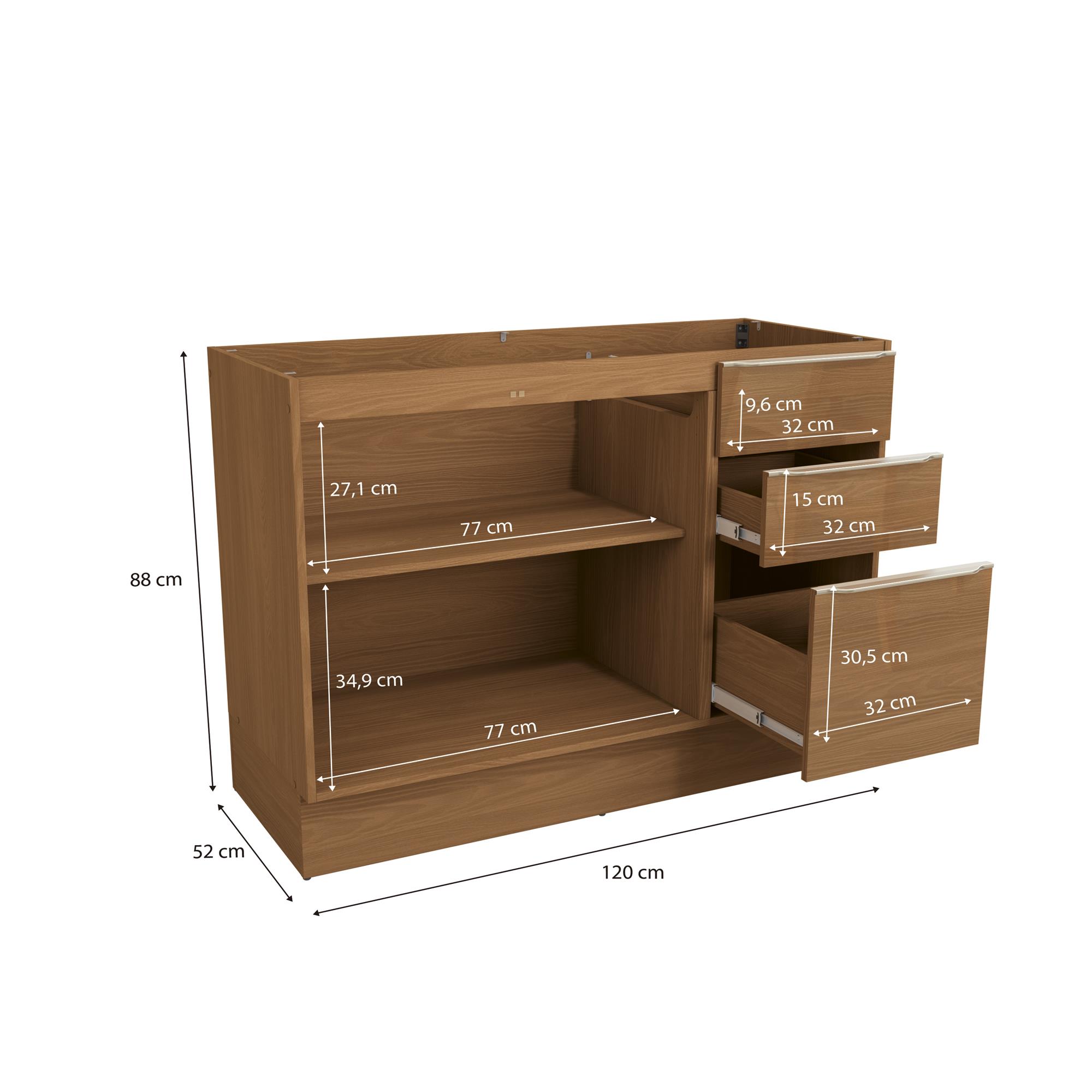 Balcão de Pia 2 portas | 3 gav 120cm