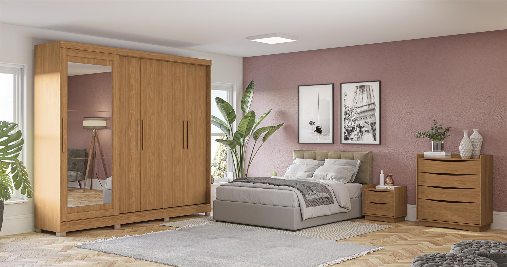 Roupeiro 5 portas | 4 gavetas | com pés | espelho